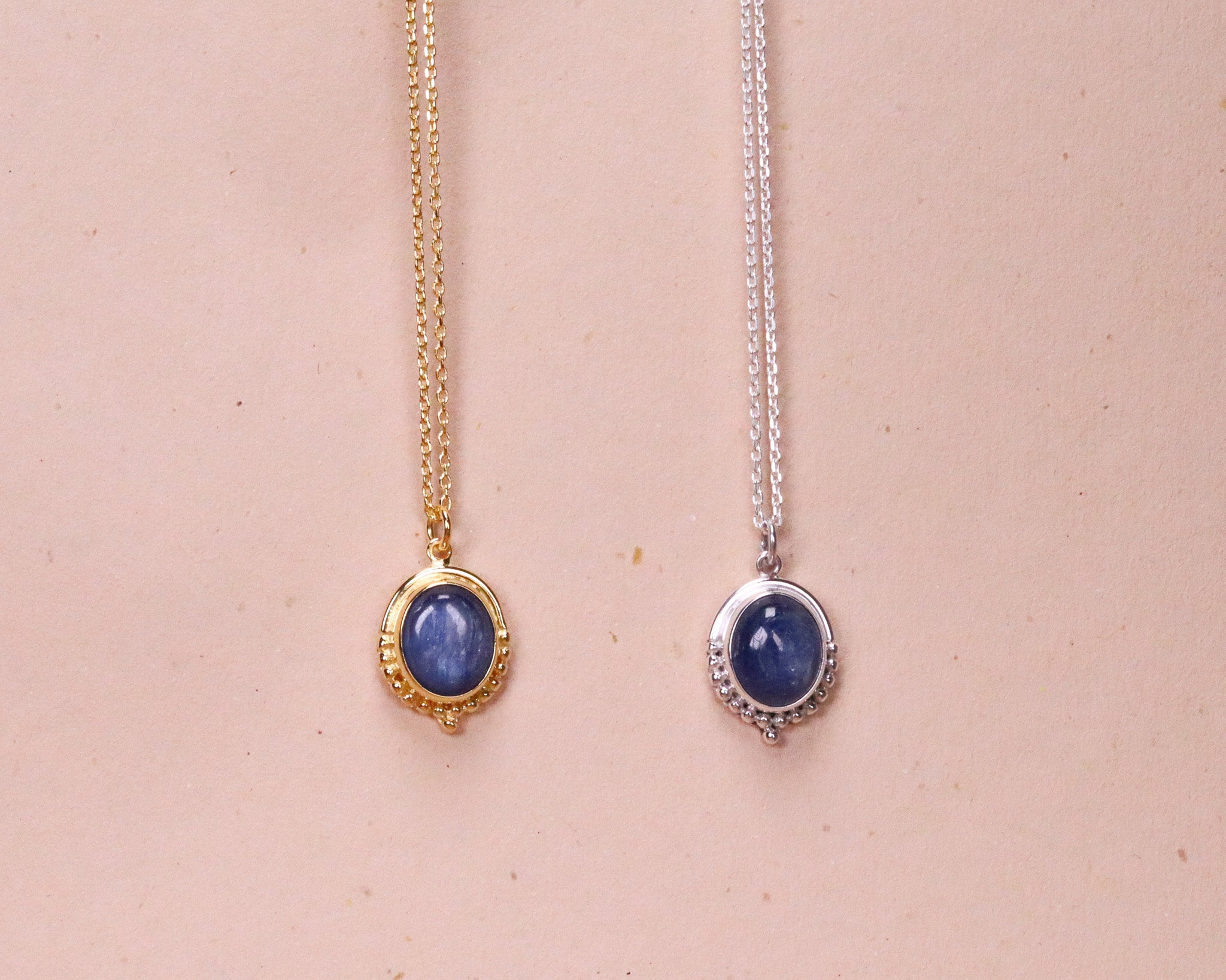 Die Kette ALIGN lädt dazu ein, Balance und innere Ruhe zu finden. Der blaue Disthen erinnert an die Weite des Himmeln und das stille Fließen des Wassers. Diese Kette steht als Symbol für Klarheit und Ausgeglichenheit, die dich unterstützt deinen eigenen Rhyhtmus zu spüren und in Harmonie zu bleiben.
